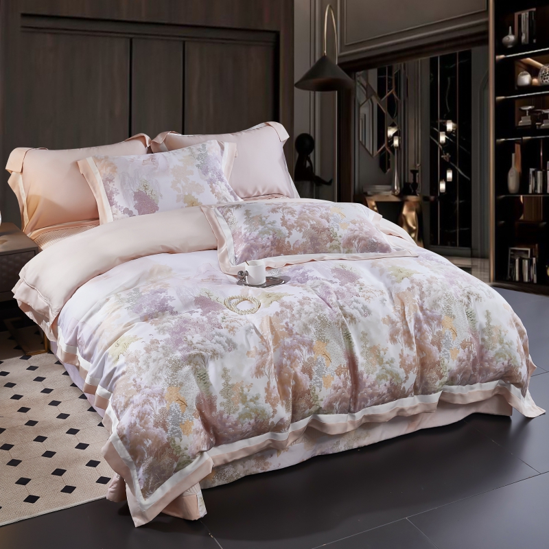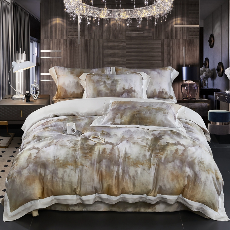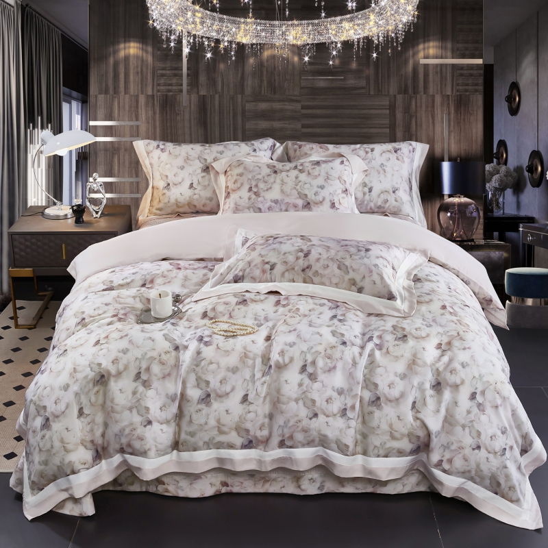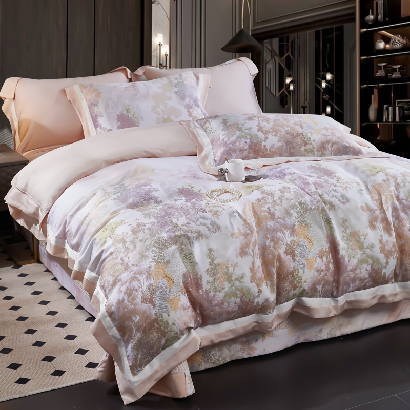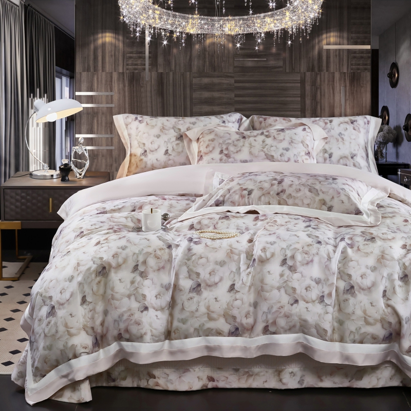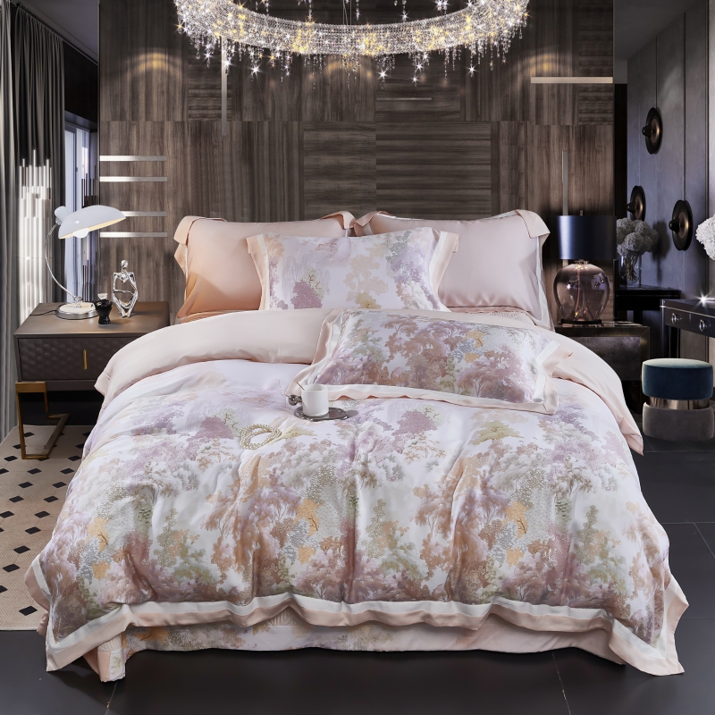 新款100支天丝印花床盖四件套