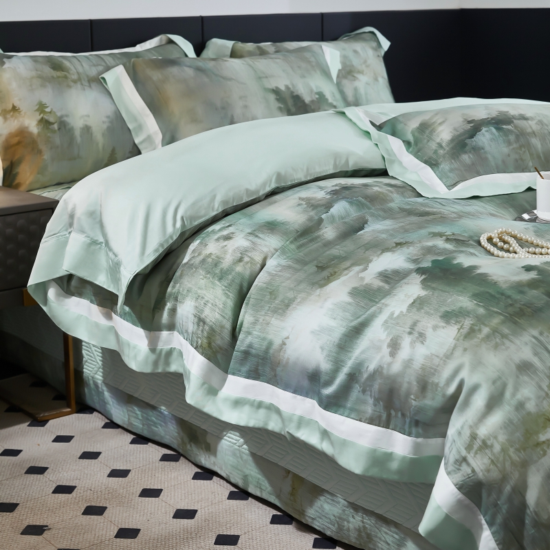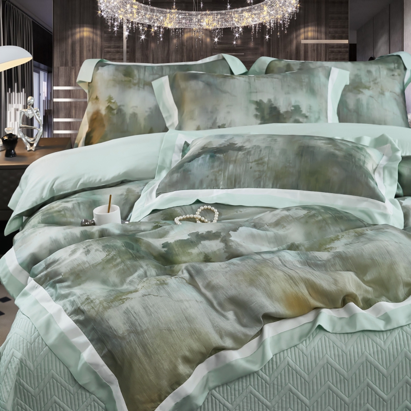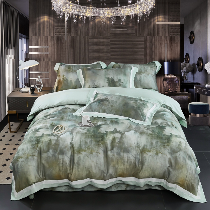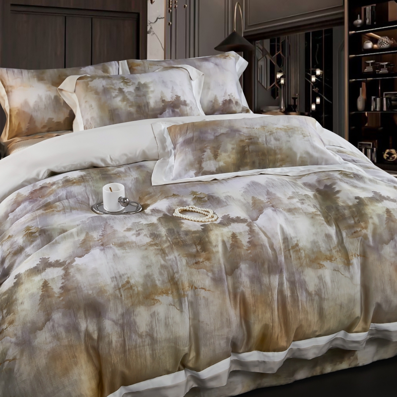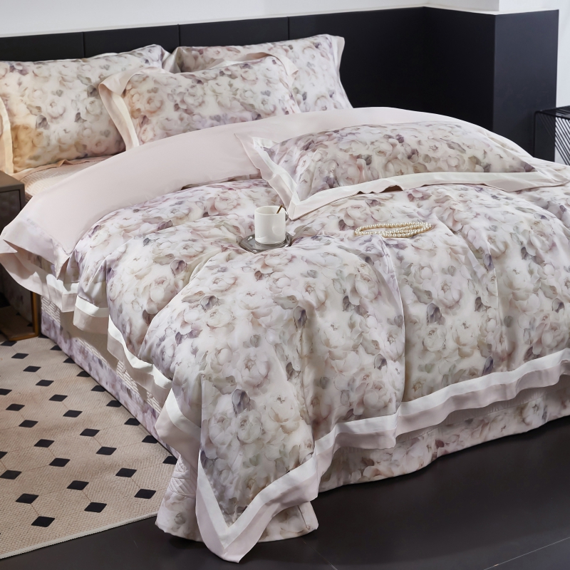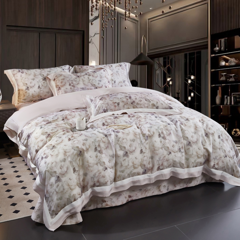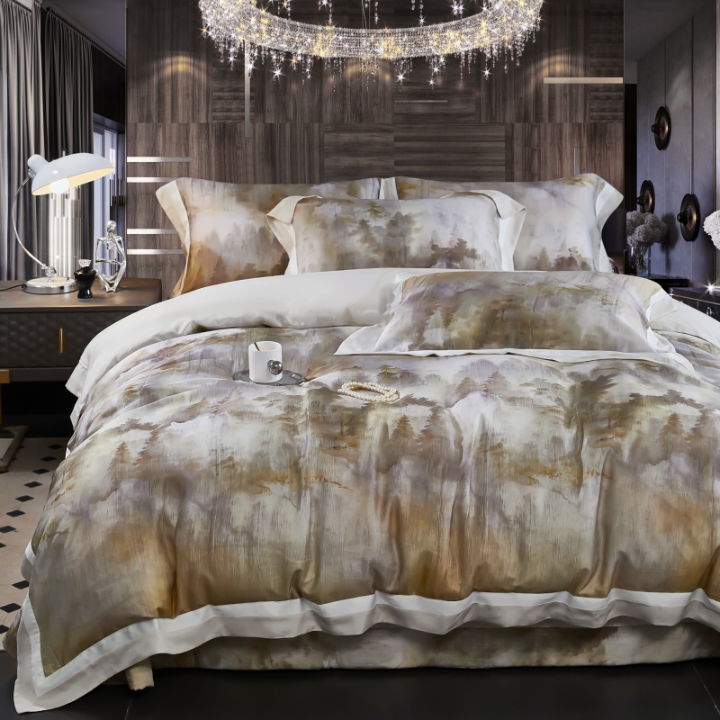 新款100支天丝印花床盖四件套